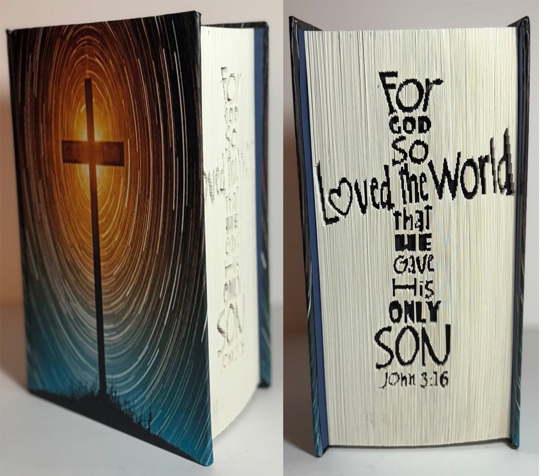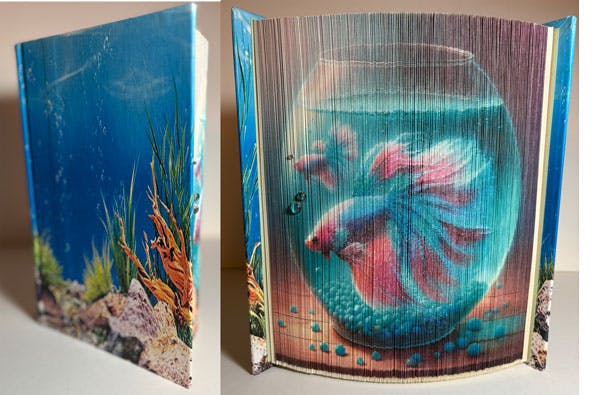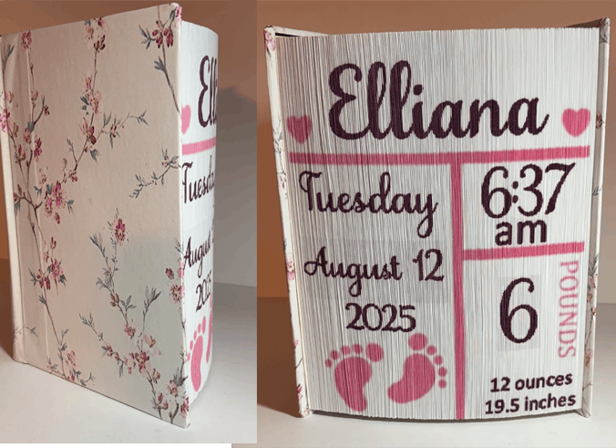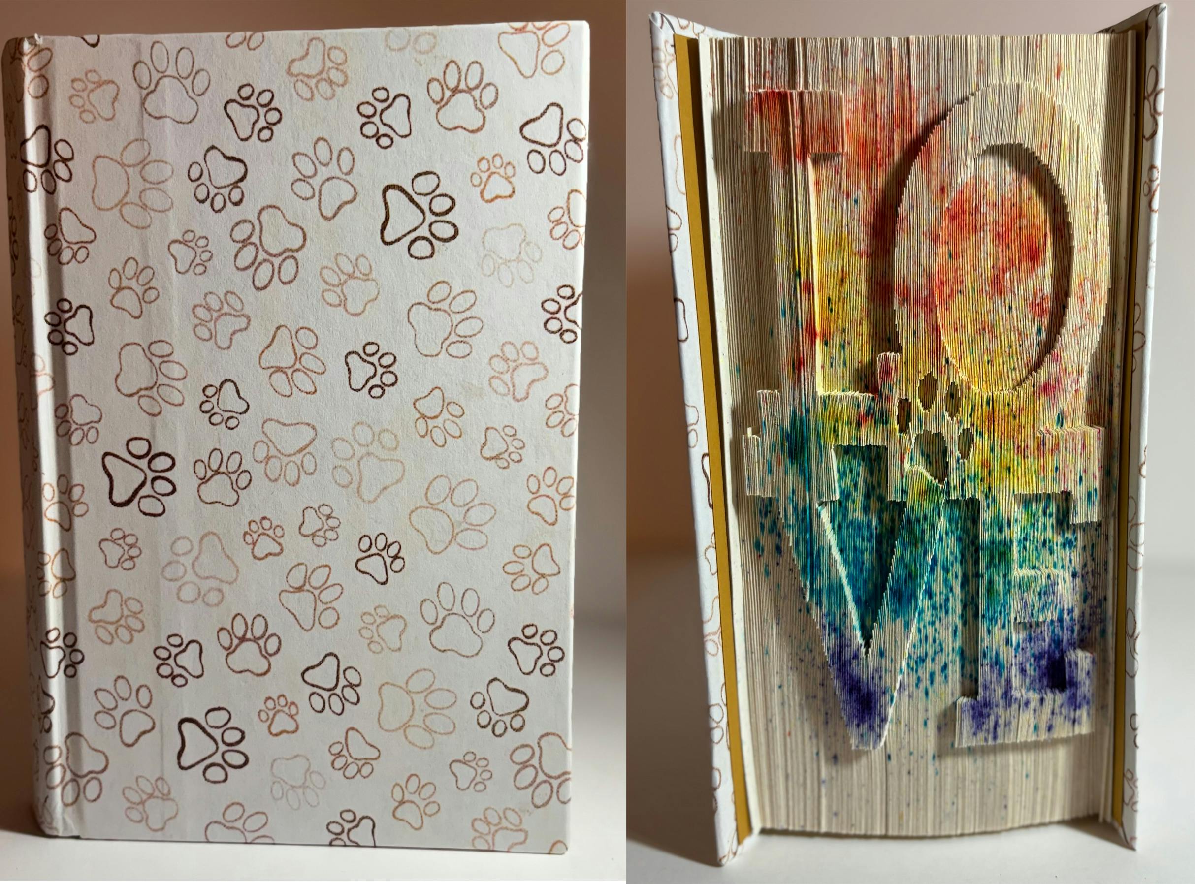 I love to take used books that are destined for the trash and give them a new life by folding them into a design that can be loved. I enjoy personalizing the covers so that each book is unique.